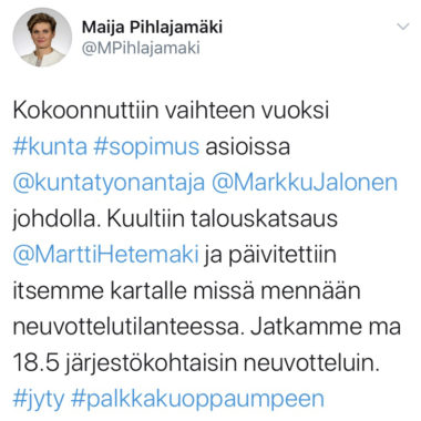 Seuraa sopimusneuvotteluja tältä sivulta ja Jyty-lehdestä. Aihetunnisteemme sosiaalisessa mediassa: #ArvostusOnEuroja