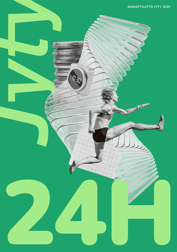 Julkaisun nimi: Jyty 24 H, Ammattiliitto Jytyn vuosijulkaisu 2026 Päätoimittaja: Jaana Parkkola / Jyty Tuottaja: Sanna Pyysalo / Jyty Ulkoasu: Iina Lievonen-Thapa / Kubo Taitto: Mikko Terävä / Jyty Kirjoittajat: Maarit Krok, Tuomas Muhonen, Jaana Parkkola, Sanna Pyysalo, Mikko Terävä / Jyty Kuvaajat: Krista Luoma, Sanna Pyysalo, Jussi Vierimaa Yhteystiedot: 020 789 3799, etunimi.sukunimi@jytyliitto.fi Osoitteet: Jytyn jäsenrekisteri Paino: PunaMusta Oy Kaupalliset ilmoitusvaraukset: MikaMainos Oy, 050 528 7782, mika.sainio@mikamainos.fi Jytyn jäsenrekisterillä on väestötietolain (507/1993) mukainen lupa päivittää jäsenten nimiä ja osoitteita Väestörekisterikeskuksen väestötietojärjestelmän tiedoilla.