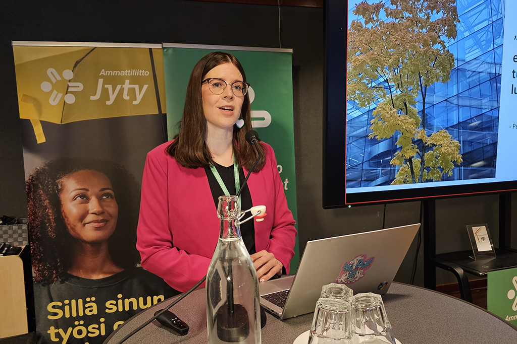 Liiton puheenjohtaja Jonna Voima kävi puheenvuorossaan läpi yhteiskunnallista tilannetta, joka ei työntekijän kannalta ole ruusuinen. Hänen mukaansa työelämäheikennykset eivät luo kasvua tai turvallisuuden tunnetta työntekijöille.