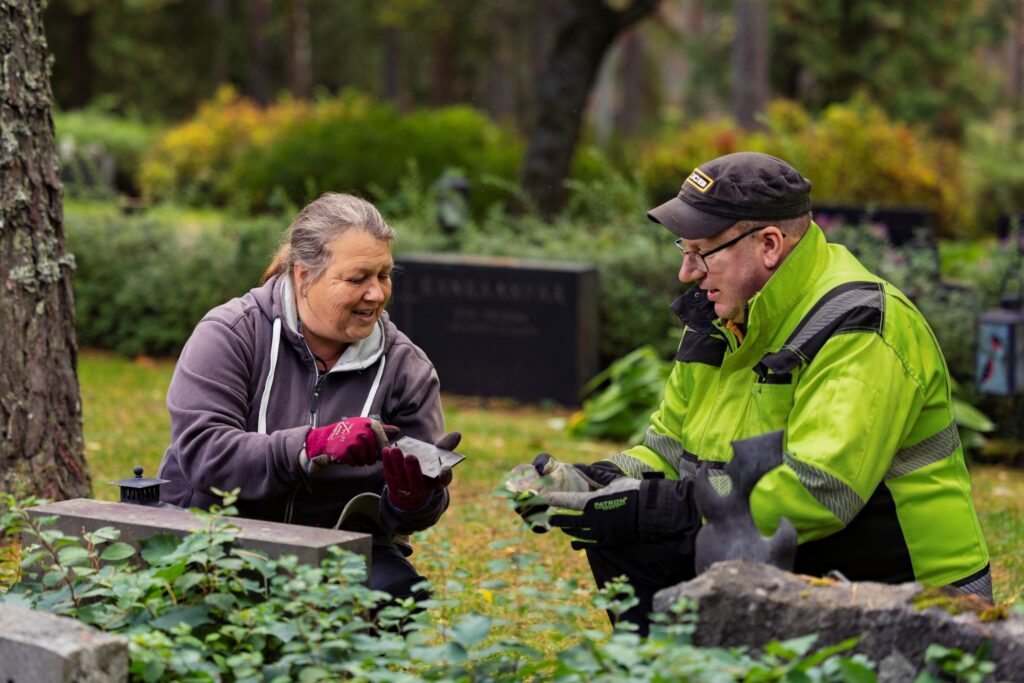 Hyvä yhteishenki välittyy myös ulospäin. Hautausmaalle omaistensa haudalle tai muuten vain kävelemään tulevat ihmiset juttelevat herkästi hautausmaan työntekijöille.