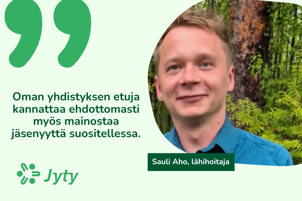 Aho on kunnostautunut jäsenhankkijana, sillä hänen suosituksestaan Jytyyn liittyi viime jäsenhankintakaudella peräti 10 uutta jäsentä. Aktiivisella jäsenhankinnallaan Aho ansaitsi 800 pistettä Jytyn palkintokauppaan, josta voi hankkia itselleen huikeita palkintoja – vaikkapa sen poreammeen.