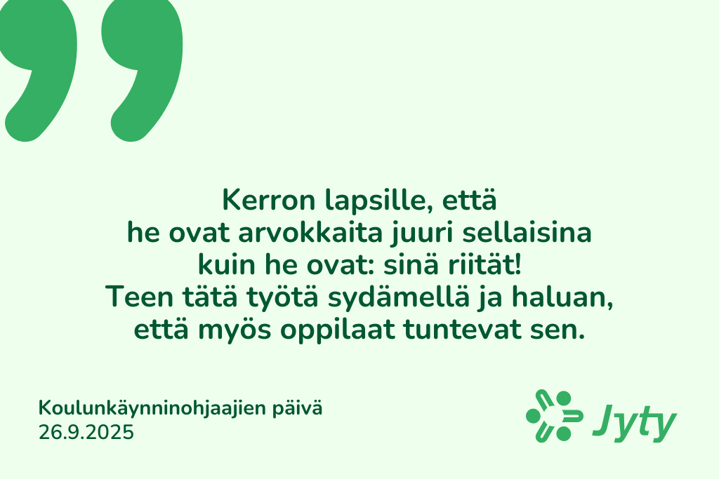 ”Koulunkäynninohjaajat ovat merkittävässä roolissa koulujen moniammatillisessa yhteistyössä. Valitettavasti heidän merkityksensä koulujärjestelmässä usein julkisessa keskustelussa unohtuu”, Ammattiliitto Jytyn puheenjohtaja Jonna Voima toteaa.