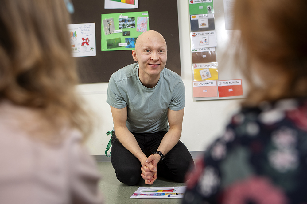 ”On ehdottomasti päivän hienoin hetki, kun lapset tulevat innoissaan päiväkotiin ja juoksevat kädet ojossa suoraan syliin. Ja jos päivä olisikin alkanut huonommin, niin siitä voidaan sitten yhdessä keskustella. Kun kaikki ovat paikalla, aloitamme kuulumisten vaihtamisen ja jokainen pääsee kertomaan viikonlopustaan”, lastenhoitaja Jyri-Ville Lehtinen sanoo.