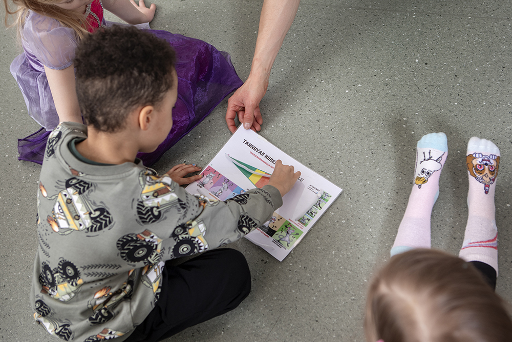 ”Meillä oli nelisen vuotta sitten hyvin haastava ryhmä, jossa oli paljon tunneperäisiä ongelmia. Se kuormitti meitä kaikkia. Tajusimme, ettemme osanneet ohjata lapsia tunnetasolla, eikä lapsilla ollut keinoja tulla kuulluksi. Niinpä kehitimme erilaisista tunnetiloista kertovat kuvat ja esitimme ja kuvasimme erilaisia tunteita hassuttelun ja draaman keinoin”, Lehtinen kertoo.