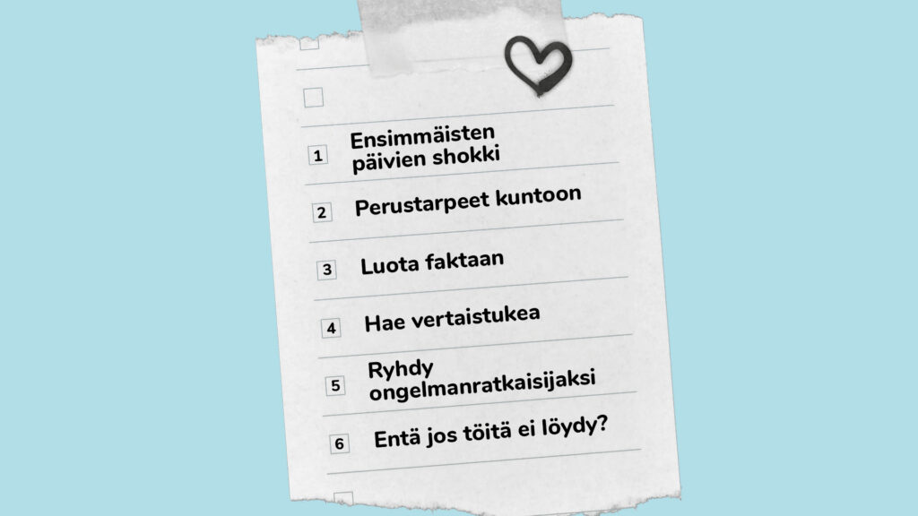 Selvitä oikeutesi ja velvollisuutesi. Oletko oikeutettu muutosturvaan? Entä työterveyshuoltoon? Varmista tiedot esimerkiksi ammattiliitostasi ja työvoimatoimistosta, ei sosiaalisen median kanavista.