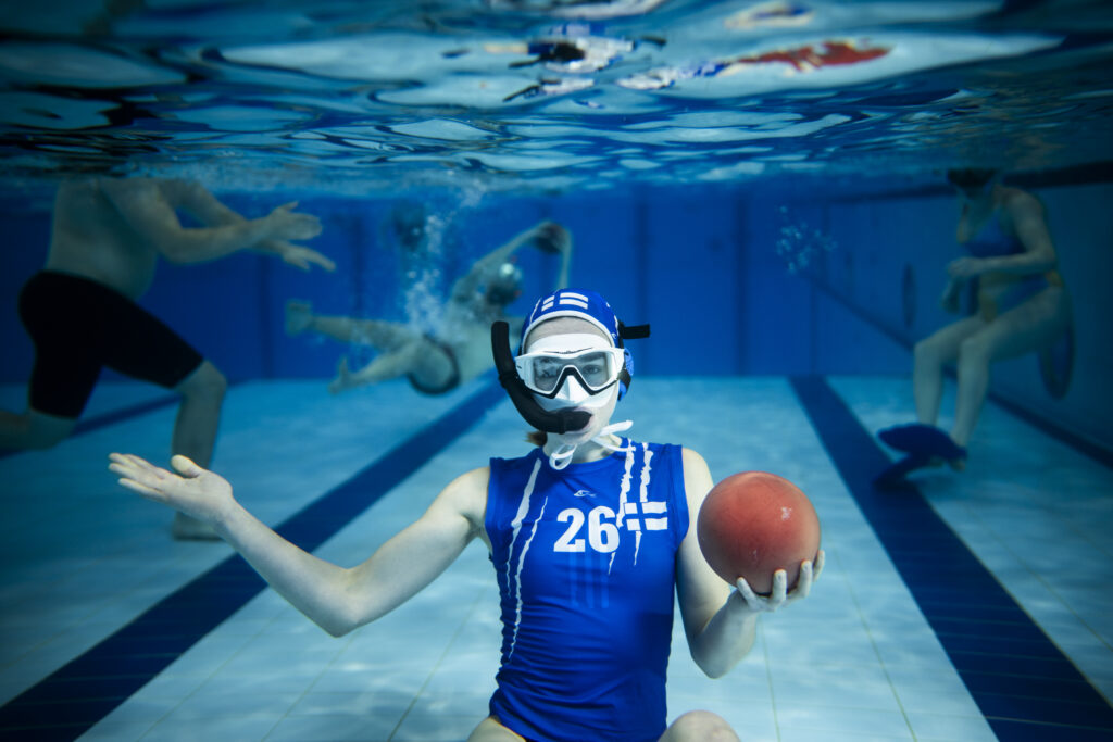 Niina Jurva irrottautuu työasioista muun muassa pelaamalla uppopalloa. Yhteisöllisestä ja fyysisesti vaativasta lajista on tullut iso intohimo.