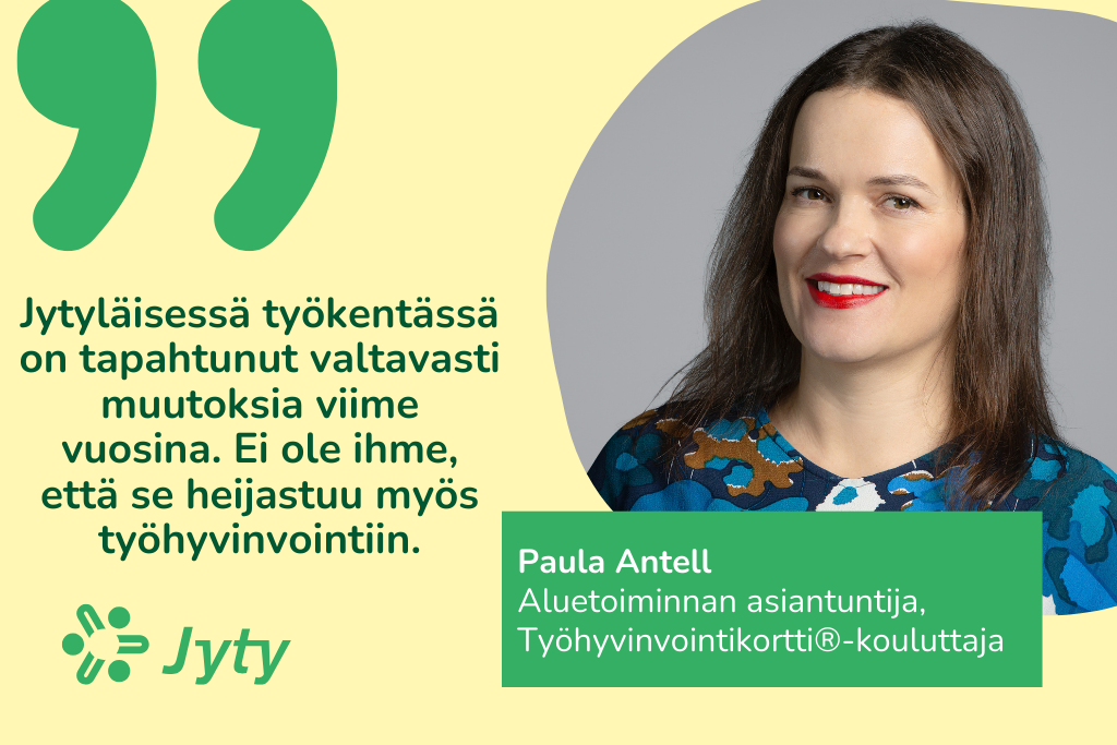 Paula Antell on sertifioitu Työhyvinvointikortti®-kouluttaja. Hänen mukaansa työhyvinvointiin liittyvä pysyvä teema on muutos.