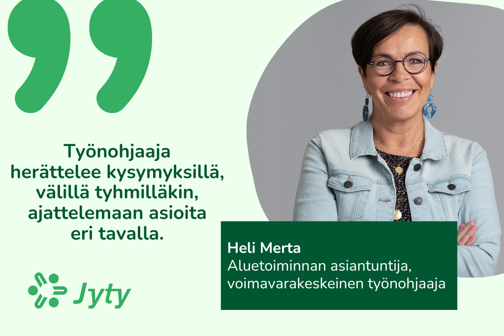 Työnohjaaja ei anna neuvoja tai ratkaise ongelmia, vaan herättelee kysymyksillä, välillä tyhmilläkin, ajattelemaan asioita eri tavalla.