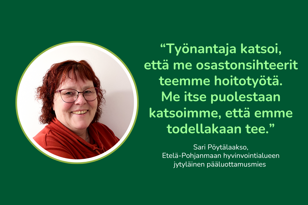 ”Muutos tapahtui sairaanhoitopiirin aikana, ja palkkaa maksettiin väärän työaikamuodon mukaan vuosina 2016–2019 yhteensä lähes neljä vuotta”, Etelä-Pohjanmaan hyvinvointialueen jytyläinen pääluottamusmies Sari Pöytälaakso kertoo.
