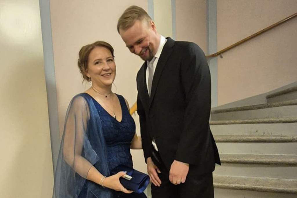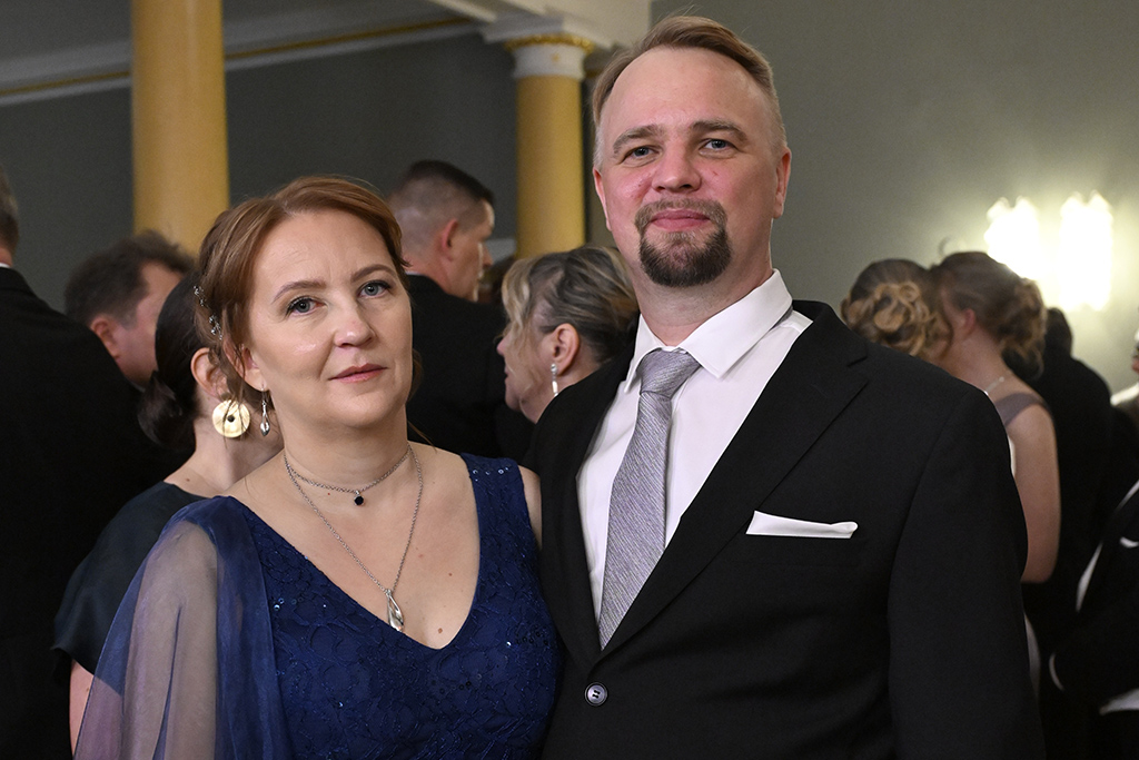 Vuoden hätäkeskuspäivystäjäksi valittu ylipäivystäjä Tiina Mitts Vaasan hätäkeskuksesta juhli tänä vuonna itsenäisyyspäivää Linnan juhlien loisteessa puolisonsa Thomasin kanssa.